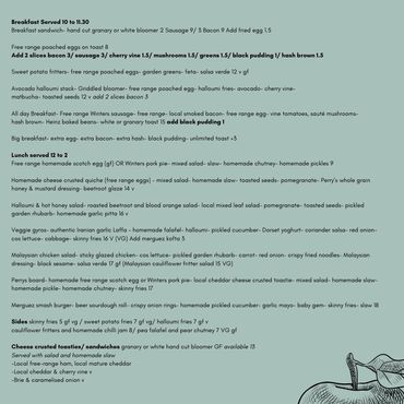 We are committed to using only the freshest and highest quality ingredients in our dishes. We source our produce, meats, eggs, vegetables and dairy from local farms and suppliers. Our eggs, chicken and pork will always be free range and our lamb is local.